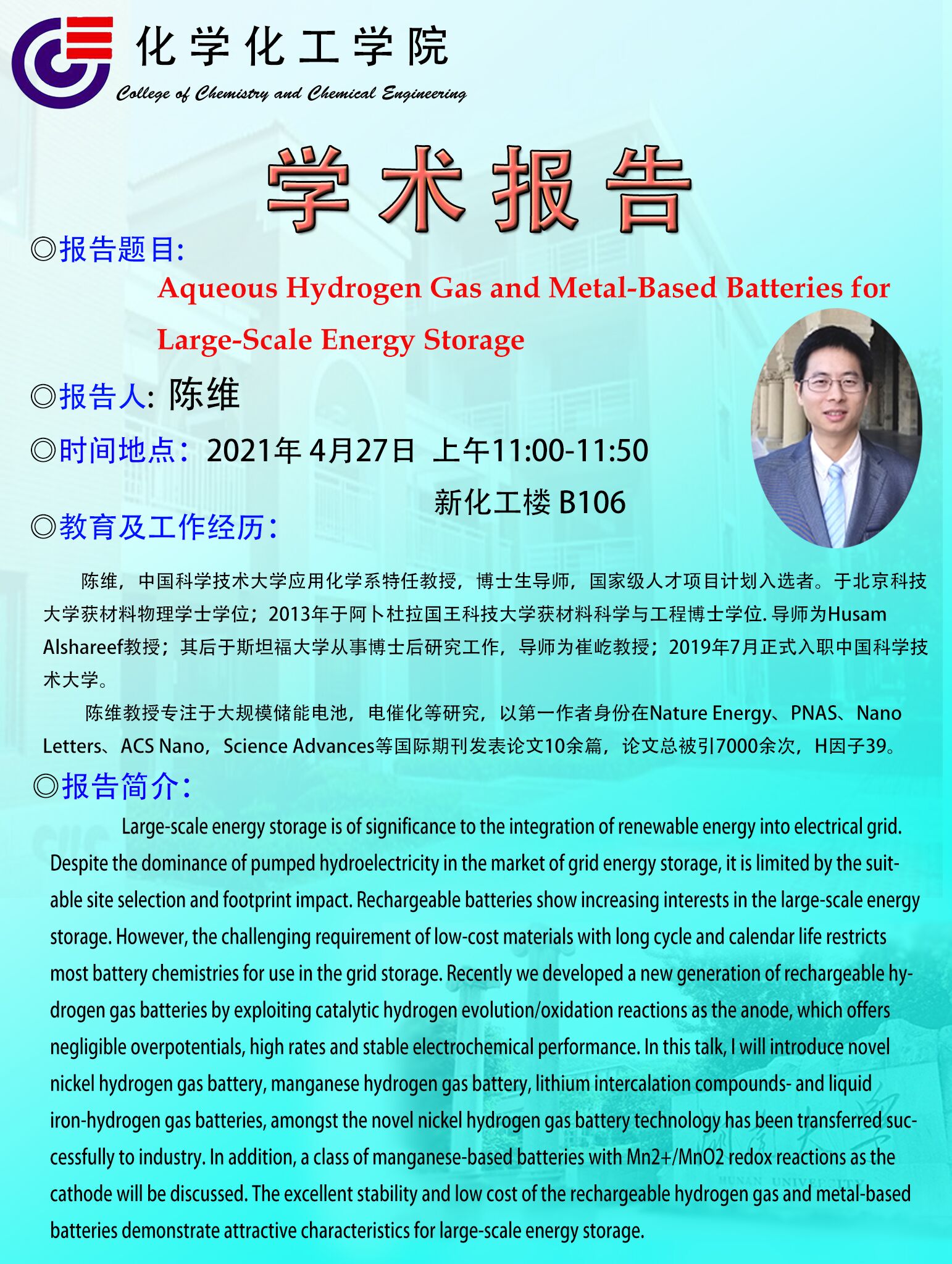 化工院:Aqueous Hydrogen Gas and Metal-Based Batteries for Large-Scale Energy Storage