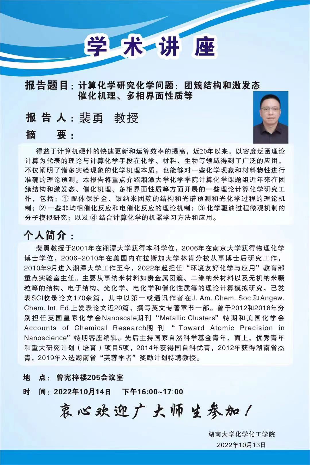 化工院:计算化学研究化学问题:团簇结构和激发态催化机理、多相界面性质等