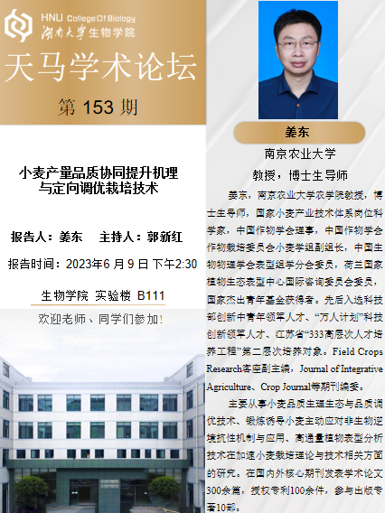 生物学院:小麦产量品质协同提升机理与定向调优栽培技术