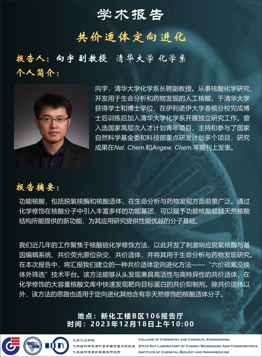 学术地点 新化工楼B区106报告厅 主讲人 向宇