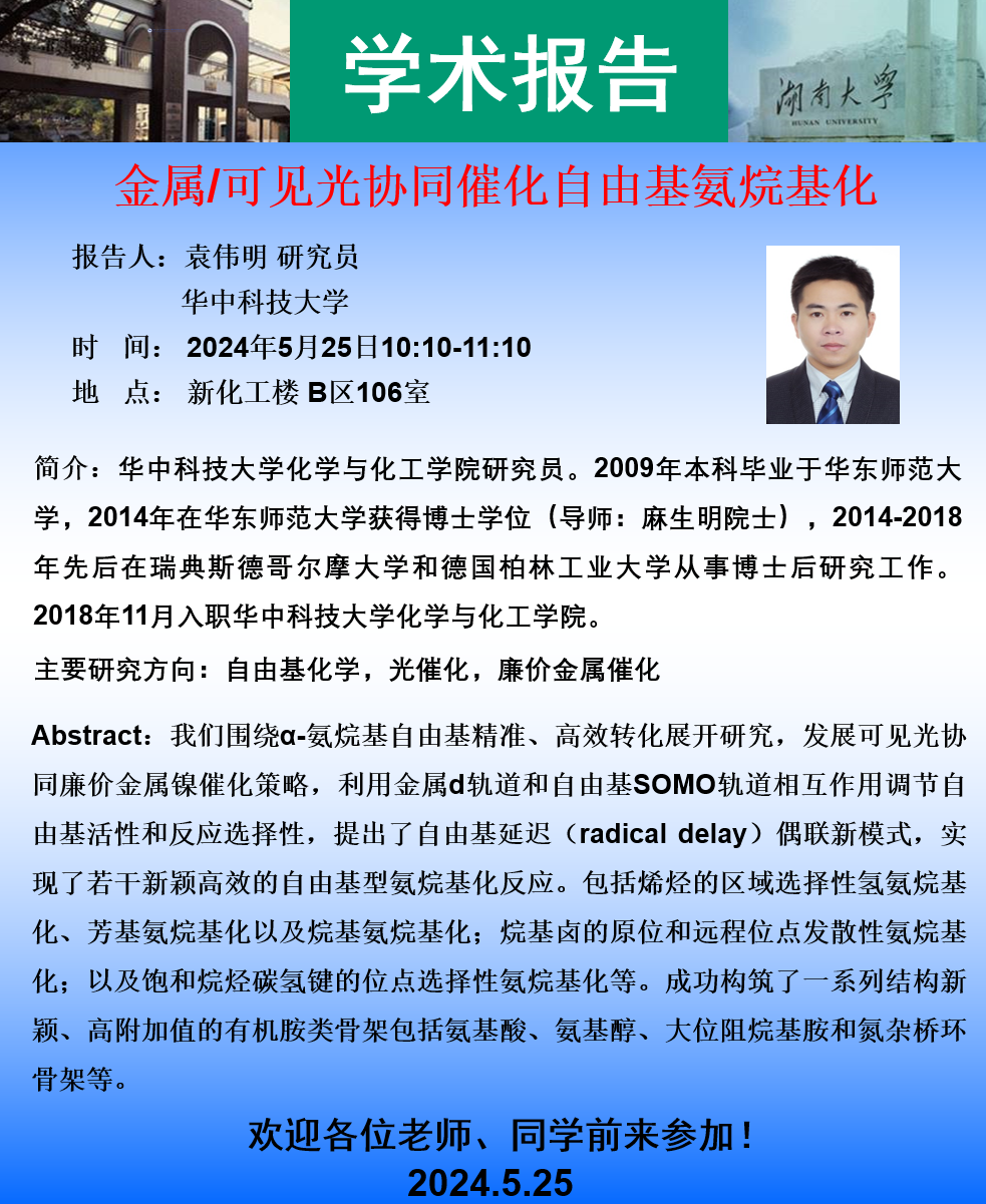 学术地点 新化工楼 B区106室 主讲人 袁伟明
