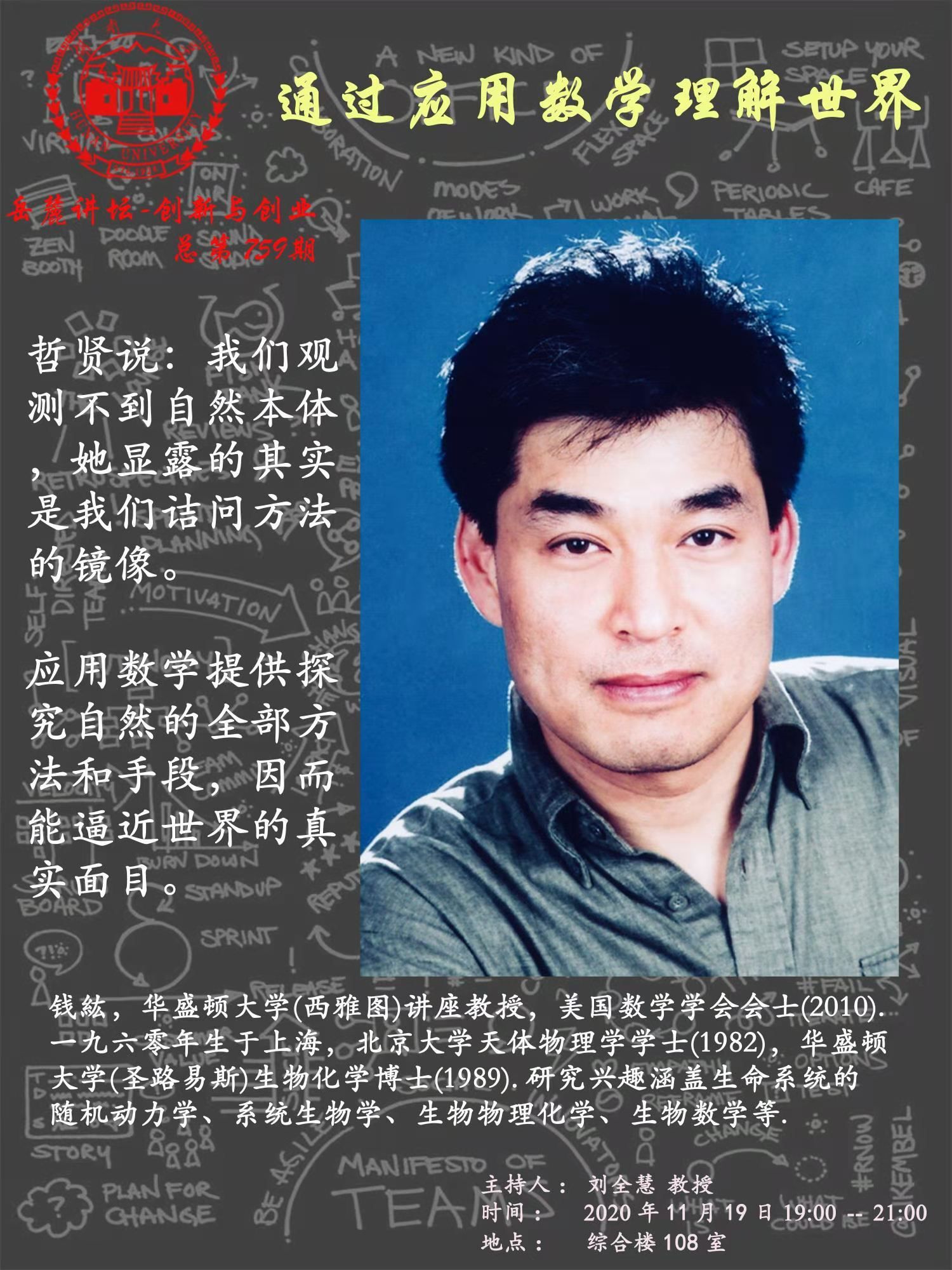 报告题目:通过应用数学理解世界