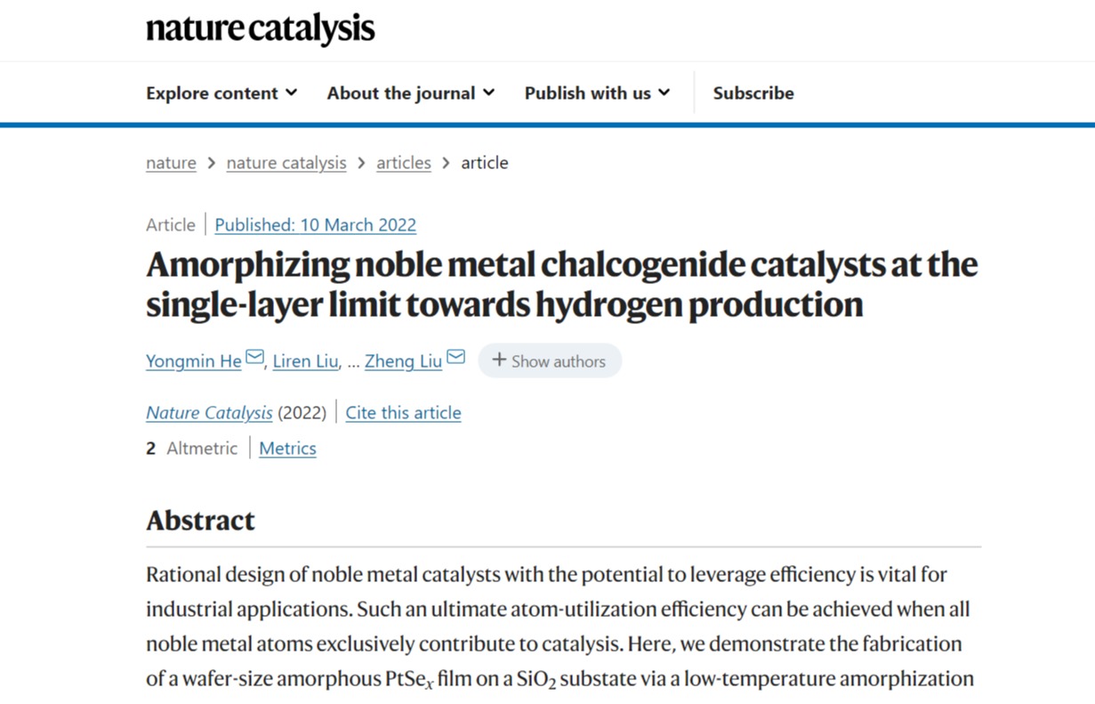 2022/03/11何勇民课题组在“单原子层”贵金属催化剂研究上取得重要进展近日,必赢化学化工学院何勇民教授和新加坡南洋理工大学刘政教授、南京航空航天大学张助华教授团队合作,设计了单原子层贵金属催化剂,该研究成果以“Amorphizing noble metal chalcogenide catalysts at the sin... -