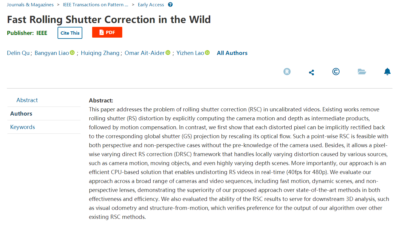 2023/06/21劳奕臻副教授指导两名本科生在卷帘快门相机的三维视觉应用研究取得进展近日,信息科学与工程学院劳奕臻副教授指导两名本科生在卷帘快门相机(Rolling shutter)的三维视觉应用领域取得进展,针对卷帘快门相机因时空离散的曝光模式易导致图像出现几何形变的问题,提出了一种高效的图像... -